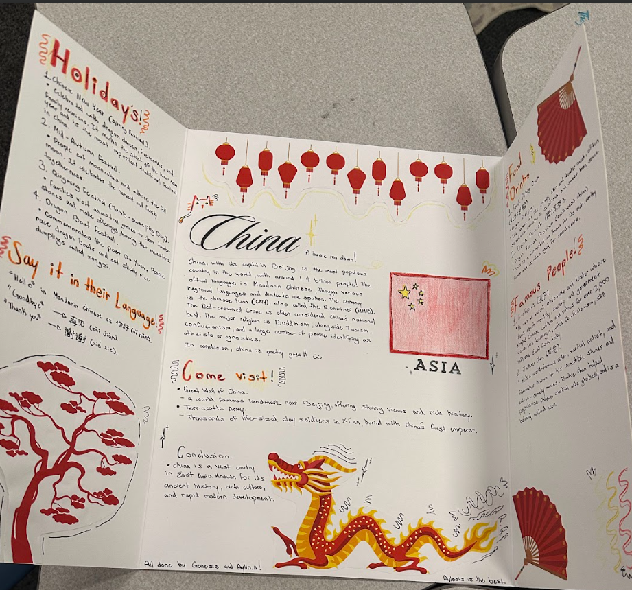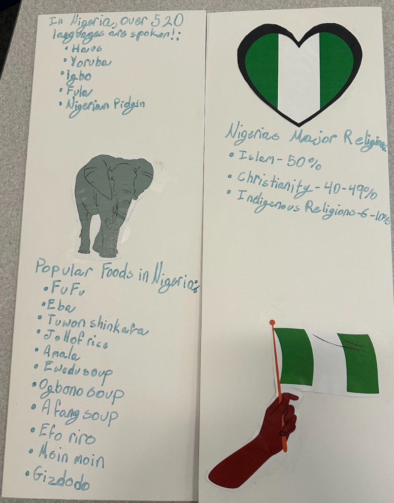 Over several weeks, students studied geography, completed country-specific projects, and learned through hands-on exploration. Their efforts culminated in the “Around the World Festival,” a full cultural showcase and taste experience that brought continents to life. Each table in the school cafeteria represented a country or region, offering interactive activities and authentic cuisine—from Venezuelan nucita and Puerto Rican treats to Japanese edamame snack packs and Egyptian hieroglyphics.